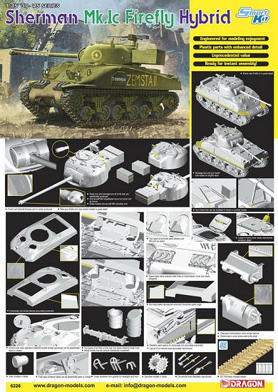 Dragon Sherman kit. I like Shermans from Dragon for two reasons. One is that they are superbly molded and the second is that the parts count isn't astronomical. This one lists 330 parts, which I can handle. Much of that is because Shermans were pretty simple tanks without a lot of complexity and secondly, Dragon's great deformable styrene tracks that are easy to glue and hold paint as good as the rest of the kit. Of course, we also get the usual small photo etch fret and metal tow cable, but these are not a major exercise in tiny bits. For more PR stuff, here is what Dragon has to say about it.