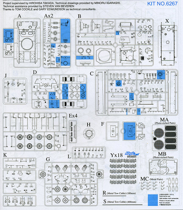 Some of the highlights of this kit are a turret with accurate weld patterns, the aforementioned turret roof armor, correct road wheel arrangements for an early production G, new cable heads, two types of engine fan, full torsion bar suspension, two types of exhaust guard and much more with a lot of parts molded by the new 'slide mold' technology that allows much greater detail.