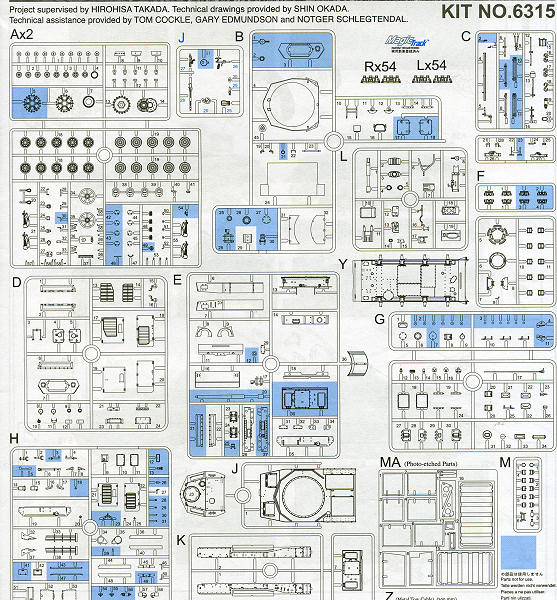 The kit provides options for ten different vehicles as you can see from the color representations pulled from the side of the kit box. Though not in any sort of order, here are your markings options: 4./PzRgt 31 Russia 1942; 8.PzRgt 36 Russia 1941; 3./PzRgt 21, Russia 1943; Unidentified unit Kursk 1943; PzRgt 31, Russia 1942; 3./PzRgt 35, Russia 1942; PzRgt 'Grossdeutschland, Voronezh 1942; Major Szalimov's Battalion, Leningrad 1942, 4./PzRgt 5, Libya 1942 and 8./PzRgt Libya 1942. Decals ar nicely printed and should provide no problems. The kit instructions are keyed to Gunze and Model Master colors.