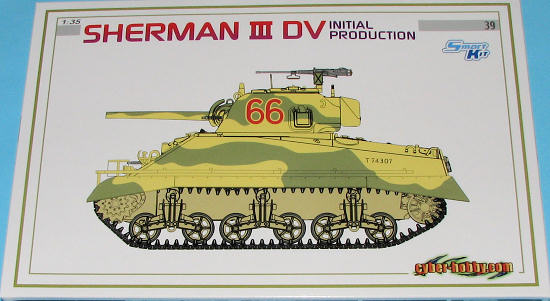 The British received far more M4 medium tanks, approximately 17,000 (roughly 34% of all M4s produced), than any other Allied nation. The British practice of naming American tanks after American Civil War generals was continued, giving it the name General Sherman after Union General William Tecumseh Sherman, usually shortened to Sherman. The US later adopted the name and the practice of naming tanks after generals. In British usage, Sherman I=M4, Sherman II=M4A1 and so on. Additional letters denoted other features; A for 76 mm M1/M1A2 L/55 gun, B for the 105 mm M4 L/22.5 howitzer, C for the OQF 17 Pounder gun, and Y for the wider tracked HVSS type suspension. Now I know that none of these suffixes have anything to do with this kit. The DV actually stands for Direct Vision, the type of hull that does without periscope vision devices.