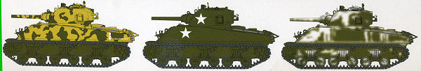 There are three options, all based on Olive Drab. one is with HQ Company, 32nd Armored Reg in Belgium during 1945 with a winter wash. Next is a 31st Armored Reg. tank in Normandy during 1944. Finally, with what looks to be mud plastered on the finish is an 8th Tank Battalion, 4th Armored Reg tank, also in Normandy during 1944.