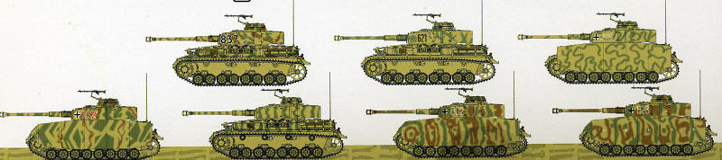 Markings are provided for seven different tanks. All of them are in Panzer Yellow with either green or green and brown squiggles on the upper surfaces and sides. 2 Panzer Division at Normandy in 1944 accounts for three of the options. 19 Panzer Division and 3 Panzer Division at Warsaw in 1944 have two others, while the other two are on the Eastern Front with 3 Panzer Division and 5 Panzer Division respectively. You'll note that not all of the options include the side skirts.