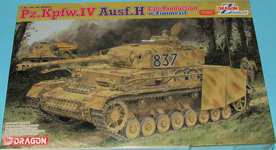 Once again, Dragon adds to their growing catalogue of Panzer IV kits with this one of the late H version with late war zimmerit. This time, the zimmerit is not on every surface of the tank, but seems to be concentrated on the vertical or near vertical surfaces. The kit also includes photo etch side skirts for the wheels/treads and skirts around the turret as well. A real plus for this kit are the deformable styrene (DS) tracks, though some separate link pieces are provided for the front. There are new items for this kit as listed in the features below: