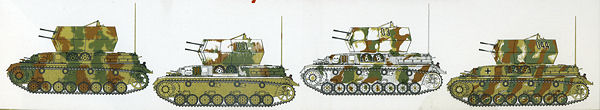 The Flakpanzer IV "Wirbelwind" (Whirlwind in German) was a self-propelled anti-aircraft gun based on the Panzer IV tank. It was developed in 1944 as a successor to the earlier self-propelled anti-aircraft gun Möbelwagen.