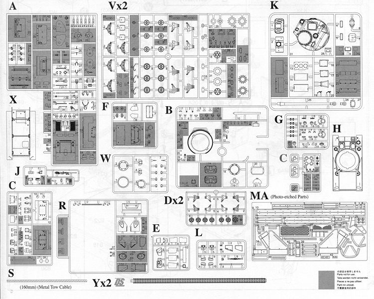 This one is basically a standard welded hull Sherman with the additional pieces to make the Firefly. This includes the large gun and a modified turret that can accept two different types of commander's hatch. One is a plain flat hatch with a .50 cal machine gun, and the other is more raised with a number of vision ports. The instructions do not state which goes with the markings option, but a look at the box art shows the earlier one. The kit includes a nicely done photo etch fret that includes various hull fixtures plus screens for the engine intakes. The forward fenders are also made of this material, which makes it easy for those who wish to show these bumped and dented. The rest of the features are listed below: