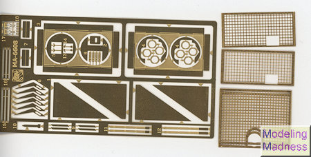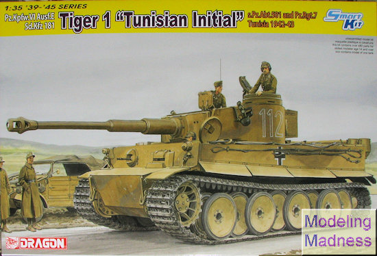 wly tooled according to Dragon's press release. Like their earlier Tigers, the kit comes with a full torsion bar suspension system and the mass of interleaved road wheels that are so typical of the Tiger. There is the nicely done engine cooling fan and radiator area which takes some of the photo etch parts for the engine fan assembly. In fact, most of the p.e. are used for this area and the intake screens. The wedges are used for the sides of the panels that fit above the forward intake screens.