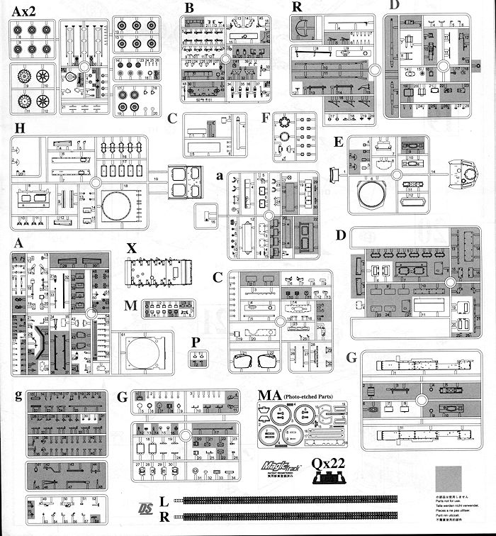 the individual track links. It also has the extra bits and new barrel to make up the flame thrower version. Below is a full list of details.