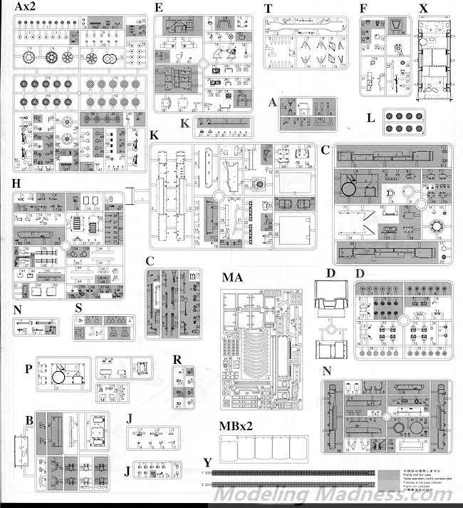 As you can see, this is a superbly detailed kit and so the instructions are equally complex. However the build illustrations are superbly drawn and if one takes one's time, no real problems should ensue. There are two camouflage schemes shown with both being unidentified units on the Eastern Front in 1944. One has the schurzen and the other does not. Both camo schemes are similar. the small decal sheet (not shown) consists of three crosses.