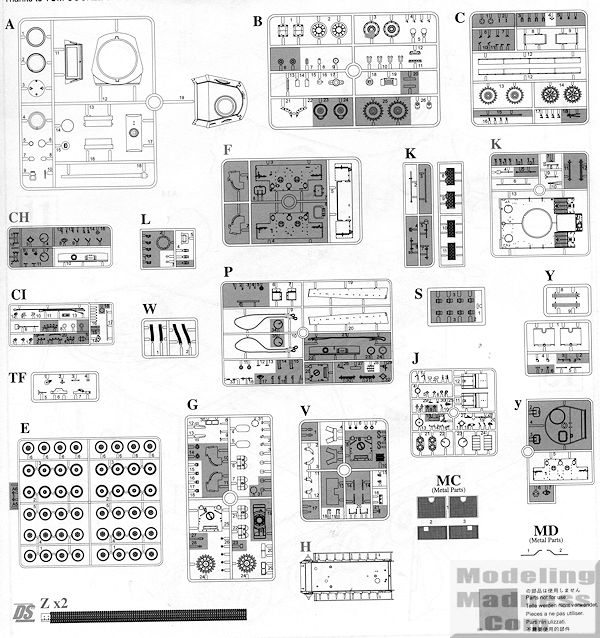 This one is based on their upgraded Tiger I hull and suspension pieces, with a brand new turret that is very much like that of the Panther series. It also uses the appropriate 75mm KwK.42 cannon. These parts are located on a new sprue 'A'. The rest of the kit is all tried and true bits from Dragon's various Tiger kits. This includes the detailed hull and complex road wheel arrangement. All the suspension bits are molded onto the hull which is fine as little will be seen the the finished project. As this is basically an early hull, some trimming, drilling and filling of bits will be needed.