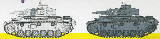 The Panzer III was intended as the main battle tank of the German forces. It outclassed most of the tanks of the time However, when it initially met the Soviet KV and T-34 tank designs it proved to be inferior. To meet the growing need to counter the T-34 the Panzer III was upgunned with the 50mm KwK 39 L/60 and received more armor which made it a very formidable opponent for the T-34. This still failed to address the problem caused by the KV tanks though, so in 1942, several self propelled guns as well as the longer barreled 75mm Kwk 40 L/43 Panzer IV Ausf F2 and the Panzer IV Ausf G were developed and produced.