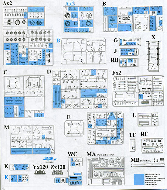 With over 700 parts, many of them being the superbly done individual link Magic Tracks, this is another of Cyber-Hobby's highly detailed kits. It is also one of their one-time releases, making it something one needs to get sooner than later. There is the usual small photo etch fret of parts and a nicely done aluminum gun barrel to add to things. The kit can be built either in traveling or firing modes. The list of new mold parts and features is featured below. I should also mention that for all intents, the Nashorn kit itself was newly done just a few months ago.