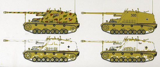 The Nashorn was based on the chassis of the Panzer IV tank, and employed an open-topped lightly armored superstructure to protect the crew. Total production of the Nashorn/Hornisse family amounted to 494 vehicles. They were issued to six individual heavy antitank battalions, and the 8.8cm main armament proved extremely potent. Like just about all of Germany's armored vehicles, a command version with additional radios was built.
