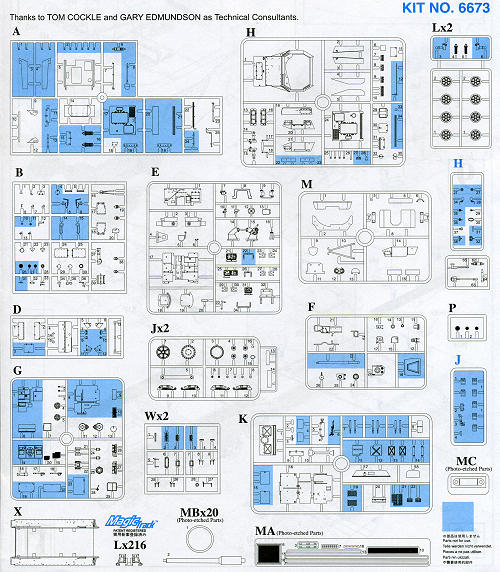 The instructions are well done with the usual Gunze and Model Master paint references. Though there are two vehicles shown in the markings section, they have the same combat number and I suspect they are the same vehicle. One has the uncamouflaged barrel as shown on the box art while the other has the barrel painted tan with brown splotches.