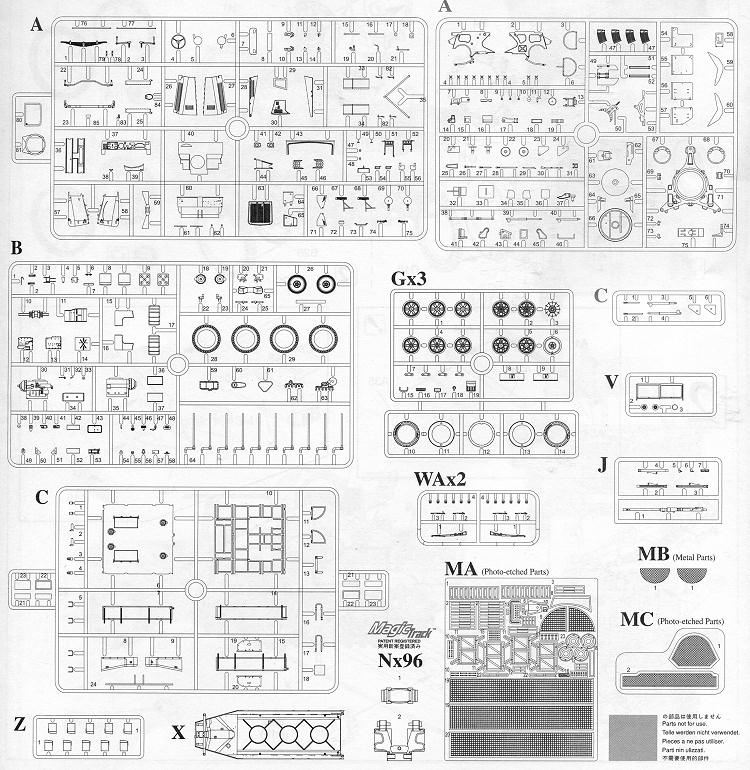 The vehicle itself is not just a curb side, but has a full engine and complete driver's compartment and suspension. The kit uses Smart Track individual link tracks to provide you with the greatest amount of detail, important in a kit like this where track sag is quite noticeable. A nice touch is the inclusion of masks for the windscreen to help in painting. Here are the rest of the details.