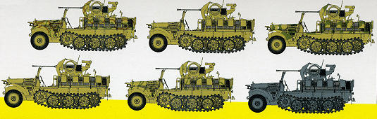 Germany fielded a whole range of halftracks during WWII, with different sizes for different purposes. The Sd.Kfz.10, one of the lighter halftrack types, was conceived as a prime mover for small towed guns such as the 3.7cm PaK36 and 2cm FlaK30. Measuring 4.5m long and weighing 4.9 tonnes, this Demag-designed vehicle could carry up to eight passengers. Its top speed was 75km/h. Around 14,000 Sd.Kfz.10 halftracks were built from 1938-45, and the chassis was also used for the Sd.Kfz.250 armored halftrack. Several different specialist vehicles were based on this halftrack design, among them the Sd.Kfz.10/5. This anti-aircraft platform carried a 2cm FlaK38 cannon on a purpose-built platform on the rear of the hull. The weapon system was used by both the Wehrmacht and Luftwaffe.