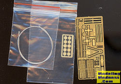 This kit is not a curbside and comes with a relatively complete four cylinder engine with radiator and hoses. The interior section is a nicely molded piece on which there are two seats and onto which a dash board, steering system as the engine transmission are shown. I have to say that the way the steering wheel is attached is something a bit different and I'm sure it took a little while for the driver to get used to it. Speaking of which a driver figure is included. In the back are various ammo storage areas and personal weapons.
