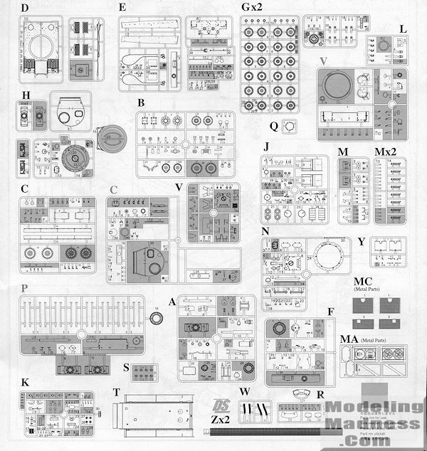 A majority of components in this special release, like turret, upper hull, engine deck, rear panel, road wheels, spare tracks and etc, were newly tooled for the Witmann release just a few months ago. Like their earlier Tigers, the kit comes with a full torsion bar suspension system and the mass of interleaved road wheels that are so typical of the Tiger. There is the nicely done engine c