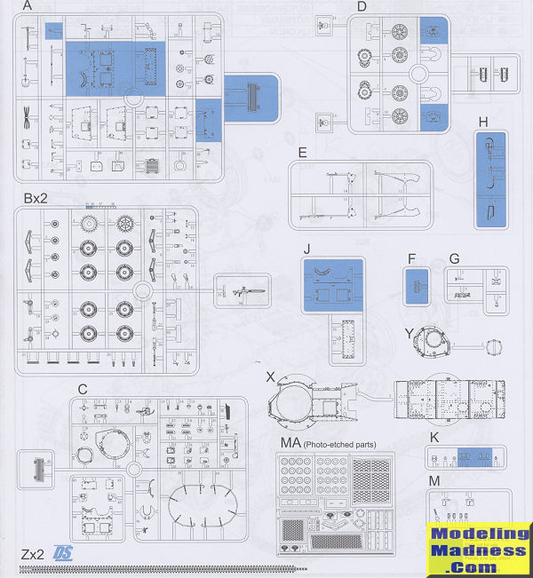 Thanks to the relatively low parts count (220 parts), the instructions are not as busy as with other kits. The construction steps are well drawn and logical. Two options are provided which are listed as the ever popular 'unknown unit 1945'. One is the box art tank and the other is quite similar but in a darker camouflage scheme. The camo looks to be quite hard edged so I can assume that it was brush painted. . The small decal sheet provides more markings than what is shown in the painting and camouflage scheme. You only use the ones on the far left of the sheet.