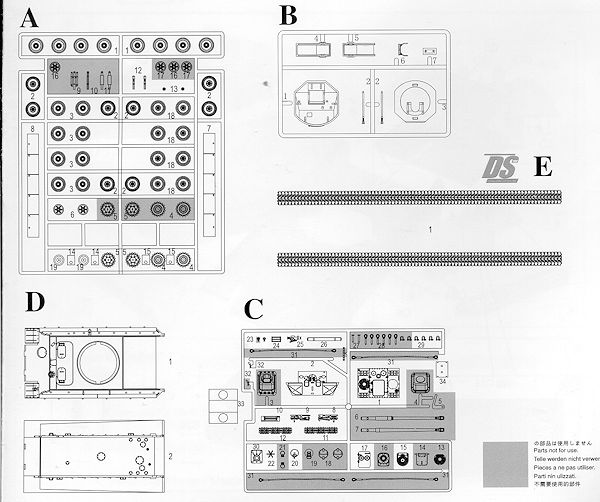 Instructions are well done and in color with the usual Gunze references. Since the vehicle never entered service or even had a prototype built, you can paint it any way you want. The instructions show the 'ambush' scheme on the box cover with another option having an all brown turret with the rest of the vehicle in tan. There is a small decal sheet that just provided insignia.