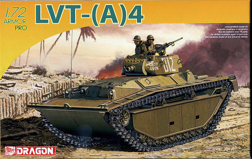 This is the second LVT kit produced by Dragon and this time it is the heavily armed support vehicle. This means a new sprue with all the bits and pieces for the new upper hull and the turret with the gun on it. Like the other kit, it is not parts intensive, since the innards will be invisible once the kit is built. It has the usual superb dragon molding with a goodly number of small bits, like hand holds to attach. It also has Dragon's excellent DS tracks so no worries about a myriad of tiny tracks. The 'road wheels', return rollers and the sprockets are all molded into the side pieces, speeding up the build process.