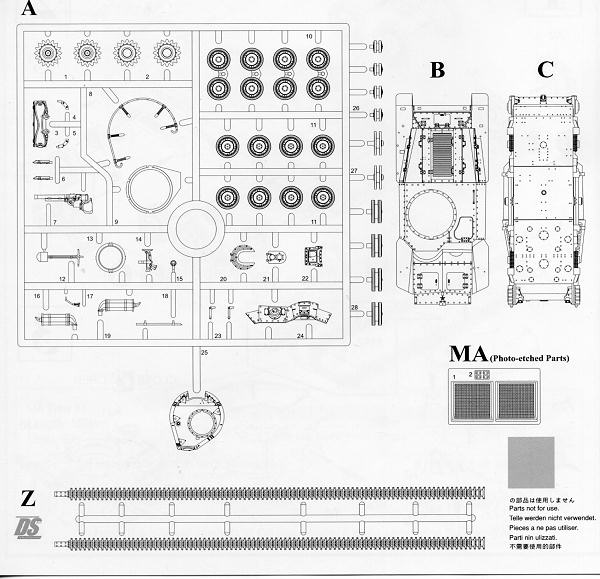 There truly is not all that much to this kit. Most of the work will be with the road wheels. According to a build of a similar kit, the suspension pieces fit too close to the hull for the tracks to line up with the idler and sprocket. Be sure to attach the latter pieces first and if needed, shim out the rest of the suspension. There is a small photo etch fret included that is designed for muffler screens and some small detail bits that fit around the commander's copula. The lone option on the kit is to have the commander's hatch open but without any interior detailing, aside from the gun breech, you'd need a figure to fill it.