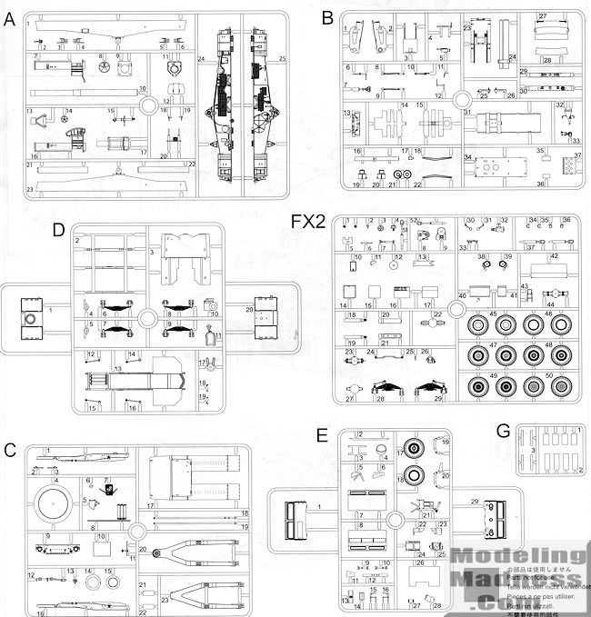 Dragon's Black Label line is usually for limited production military vehicles and I would guess that this one falls into that category. It is all new tool and unless there is a future need for M249 tractors, you probably will not see any of this kit used elsewhere. There are two tractors which have many of the same parts, but not the same layout. The aft tractor has the driver facing towards the canon, otherwise the construction of both are about the same. There is an interior with each one that consists of seats, control wheels and foot pedals. Each has a full suspension along with fuel tanks, transfer cases, drive shafts and the rest of what you'd expect on the underside of these. All of the tire/wheel assemblies are in two halves. All of the clear bits are for the tractor windows.