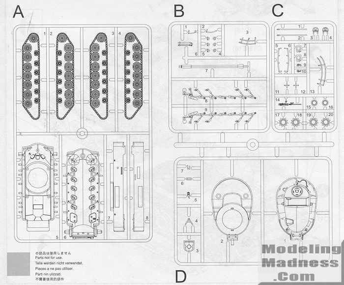 Quite a few modelers have been waiting for this one and now it is here. Probably the most difficult part of the build will be painting the road wheels and return rollers, so break out the 5/0 brush and magnifiers for this one! Also, if you want a canvas covering on the mantlet, you'll have to make it as it is not included. As a side note, I'm often puzzled as to why this feature is rarely molded on US tank kits as it seems they all had it at one time or another.