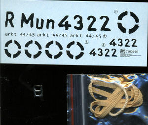 ncluded to be used as a handle on the packing case. A nicely done decal sheet is also in there and is to be used for both the rounds and the packing case.