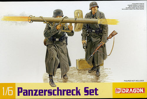 Molded in Dragon's usual medium grey plastic, this one has all the detail one would expect from a Dragon kit. Though it is a simple one to build, all the needed bits and pieces are there. It includes a cloth carrying strap with a metal buckle. There is also a case that will hold two of the 88mm rocket rounds. The kit includes three so one suspects that the third could be carried loaded. A section of string is i