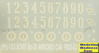 Instructions are a single folded sheet of paper and you have decals for at least six different options. Those that are described are from 1941. The overall color is a dark green, despite the cover vehicle seeming to be an olive drab. Not sure how usable the decals will be, but it would not be uncommon for these vehicles to be unmarked.