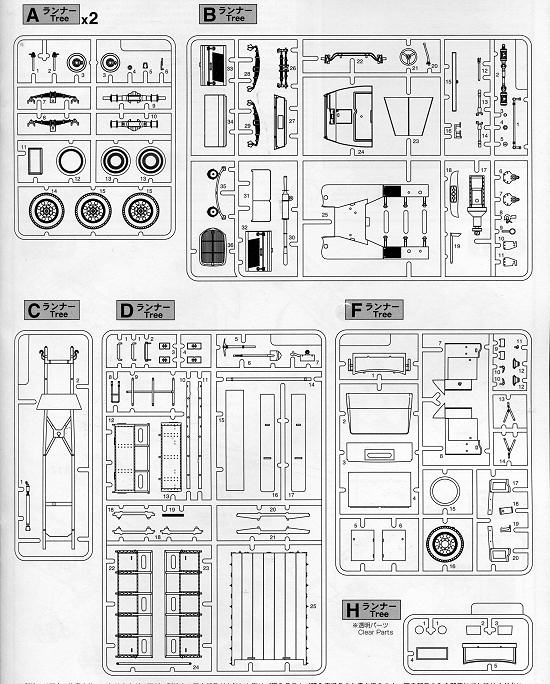 Fine Molds has a well earned reputation of producing well engineered and detailed kit. This one is no exception. Molded in their usual tan plastic there are seven sprues, including a clear one. The kit is a curbside, which means there is no full engine included. It does, however, come with a full suspension and this is well detailed. It also has a fully detailed cockpit, which is, of course, right hand drive. About a third of the construction steps are dedicated to building up the truck bed, which has many braces and brackets. The bed is open without a canvas top. I should also mention that the tires are plastic so no worries about how to deal with the vinyl ones when it comes to painting.