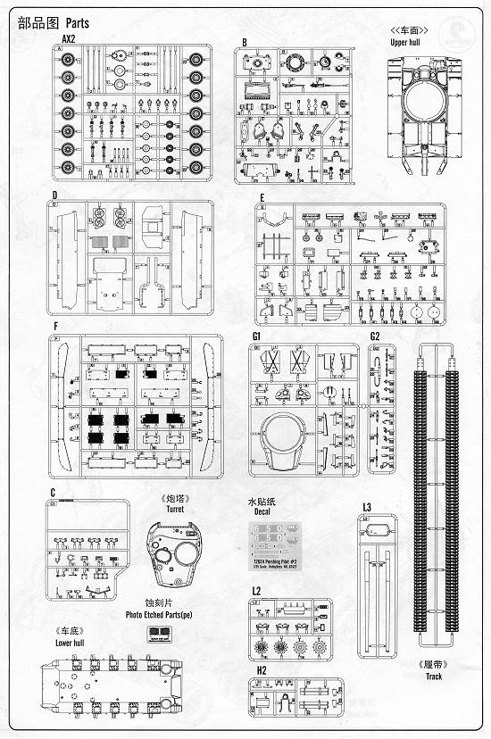 For HobbyBoss' third Pershing (and they have since done a fourth), they have concentrated on the experimental 'Super Pershing', of which few were built. The overall molding of the kit is top notch. No sink areas, no flash and no ejector pin marks that will be seen after construction. Hobby Boss also takes the additional step of having no more than two sprues per bag and covers the delicate parts with protective foam sheet. Means no broken or damaged parts in shipment.