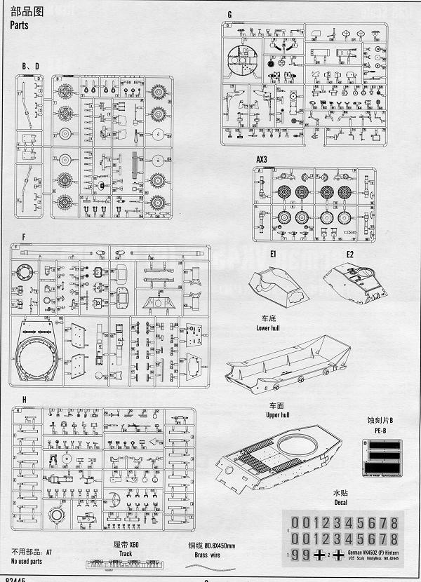 The kit does include photo etch and that consists of three engine cover screens. For a tow cable, a nice length of brass wire is provided that certainly looks like the steel cables these tanks used. Instructions are well done with color information such as it is, provided during the build. For the outside, these would have been painted panzer grey. A generic decal sheet is provided. Probably the only markings this would have carried would be the national insignia as I'm thinking that none of these were actually used operationally. However, if you know more about this, then please pass it along and I'll include it in the background information.