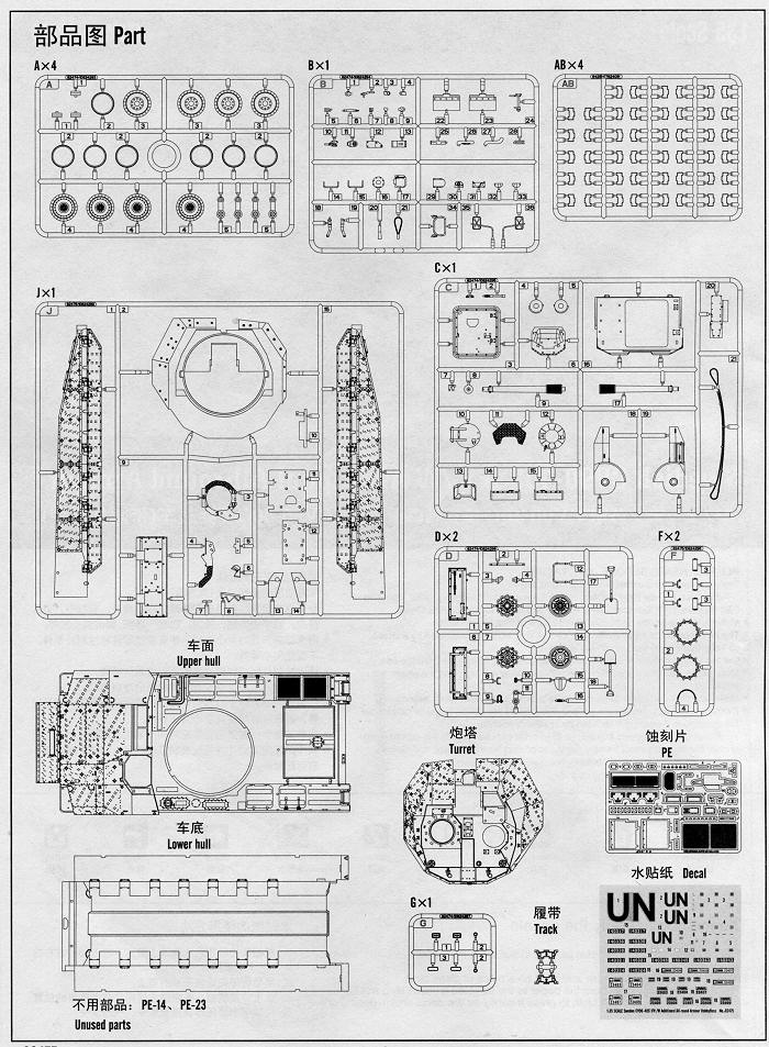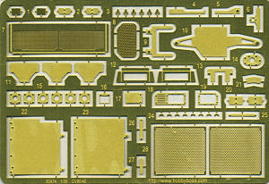 A nicely done photo etch set is included with the kit and this consists on various screens and grilles. There are also grab handles and mounting plates included on the fret. The instructions show precisely where all these pieces fit in clearly drawn construction steps. Typically, there is no 'underway' painting information, that is all contained in the overall scheme. The two painting options are for a green and a winter wash vehicle. You could also add a desert sand version as this IFV is being used in Afghanistan. The majority of the decal sheet consists of vehicle plates and IDs. A large 'UN' is also given for the winter camouflaged version. The painting guide is in full color and offers options for a number of manufacturers.