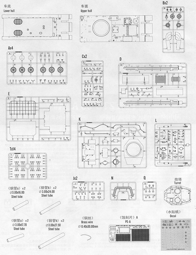 Regardless, this is a very large vehicle and measures over 10 inches in length without the planing section in the front or the ramp in the rear. The kit comes with a full suspension along with the six dual road wheels, idler, and sprocket on each side. You are treated to individual track links with 103 sections per side required. There are large trunks that fit inside. I have to assume these are used to propel the vehicle through the water by drawing water from grilles on the underside and shooting it out through openings in the rear. Covers are provided for these at the exit.