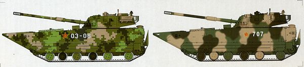 The light tank variant is armed with a fully stabilised 105mm rifled gun. The 105mm rounds carried consist of armour piercing fin stabilised discarding sabot (APFSDS), high explosive (HE), and high-explosive anti-tank (HEAT) rounds, and Chinese 105mm laser beam riding guidance anti-tank guided missile (ATGM). The 105mm missile offers the capability to engage shore targets whilst still swimming at sea, where conventional ammunition would perform poorly due to the motion of sea waves.
