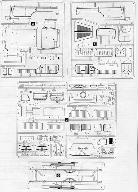 The interior is as well detailed as the rest of the kit. Individual pedals and levers are supplied and there are decals to go in the instrument panel. The seats are as plush as one would expect to find in a vehicle carrying high government mucky-mucks. Full windows and frames are supplied to be installed separately. The top can only be built in the lowered position, which may disappoint some, but it does allow for a full view of the interior and its three rows of seats.