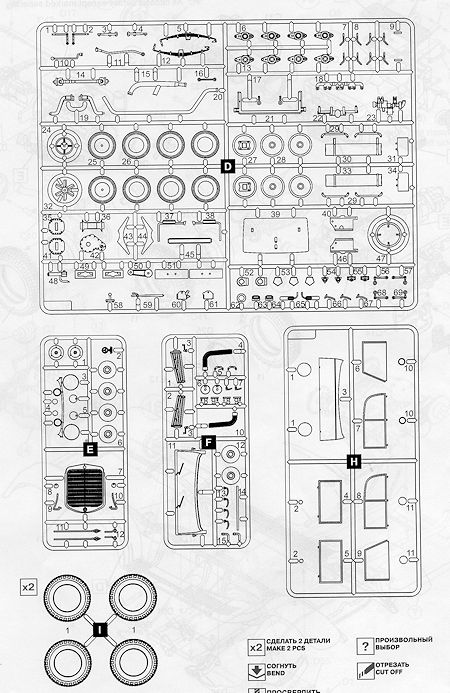 Wheels are vinyl/rubber with separate hubs, making painting quite easy and they can be added at the end of the build if you so wish. The historical section implies that this is six wheel drive, but that is not the case. The transaxles are only for the rear four wheels, and these constructs are very nicely detailed. Up front, there is a complete steering linkage that extends all the way to the steering wheel.