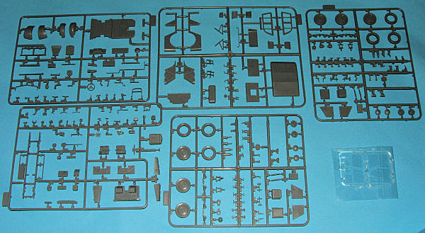 I have to say that I've been pretty impressed with the latest batch of ICM military vehicle kits. ICM has really come around to producing some nicely engineered and interesting kits. This latest Kfz.1 is an example of just that. Five grey and one clear sprue come in two bags that are stapled shut. One of the grey sprues that has things such as wheels and suspension bits has been duplicated as is the norm nowadays. The molding is very good and I found only a few sink areas to contend with. No flash and no visible ejector markings, though those of you who are contest builders may want to remove those on the inside of fenders and such.
