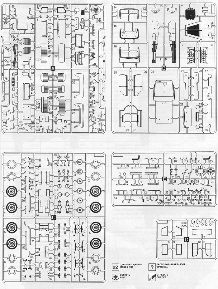 Wheels are plastic with one piece having one wheel side and the entire tire while there is a wheel for the inner insert. This does help when it comes to painting. The historical section implies that this is six wheel drive, but that is not the case. The transaxles are only for the rear four wheels, and these constructs are very nicely detailed. Up front, there is a complete steering linkage that extends all the way to the steering wheel.
