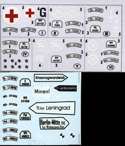 There are markings for six vehicles in a variety of colors from Normandy, to Tunisia, to Italy, to Russia. In addition, decals are provided for road signs and there are optional license plates if you do not want to do the ones on the main sheet. The two small sheets look to be well printed.