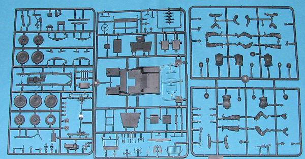 This is the first injection molded kit of the original 'jeep' that I'm aware of in this or any other scale. The kit is very nicely molded in grey plastic and does have a small amount of flash around some of the parts. I was quite impressed to see that the kit has been engineered so that there are no mold release pin marks visible when the kit is complete. This is especially true of the leaf springs, a part on model vehicles that often suffers from these marks.
