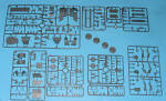 ing is first rate. No flash, no sink areas, few ejector marks and those in areas that will be hidden or easily sanded away. The 204 parts are located on 6 sprues and one goodly sized photo etch fret. In fact, many of the really small parts (like bolt heads) are on the photo etch fret. This fret is covered on both sides by a somewhat thick clear plastic film. The etched parts are attached to the fret by a very fine line so do require some cutting to set them free. I think the plastic film is to help keep them in place until actually placed on the kit. This photo etch is also used for hinges, grab handles, screens and the usual fine detail pieces.