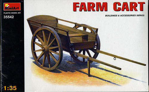 MiniArt has been providing interesting diorama sections and accessories as well as nicely done model kits for several years. One area that hasn't been done by others have been carts. Previously they did a four wheel cart and that evolved into several different boxings, some including figures and horses to draw the car. I'm pretty sure we will see the same with this one.