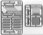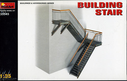 Here is another of MiniArt's very nicely done diorama features. This is a set of standard metal stairs that one finds on the side of industrial building. This set appears to have more than enough parts to build what is shown on the box art. There are five sprues which encompass the landings and the railings; each with a landing plate and a railing section as well as the I-beam supports. There are six sections of stairs, each with a railing section and 11 tread sections. These stair sections can easily be joined to provide what you need. As you may well need something like only a railing section from the sprue, you will have spares. Still, there are a number of possible ways to assemble these to meet your particular needs.