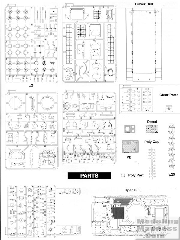 Instructions are in a book form and very nicely drawn. It uses Tamiya paint references and there are used throughout the build. Markings are for one vehicle from the 3rd Armored Cavalry Regiment of the 2nd Infantry Division. There is no external painting guide so I'm assuming that a desert sand color would be appropriate.