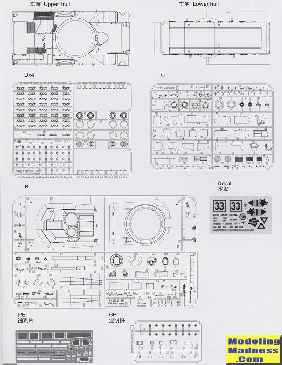 Instructions are well done with the usual dearth of color information. You get a full color painting guide and here you are provided overall colors. It seems that Panda thinks FS 34102 is the proper shade of green for three of the unknown unit options while the fourth adds large areas of sand with smaller areas of white and black to the scheme. The small decal sheet is nicely printed and provides what few markings these tanks carried.