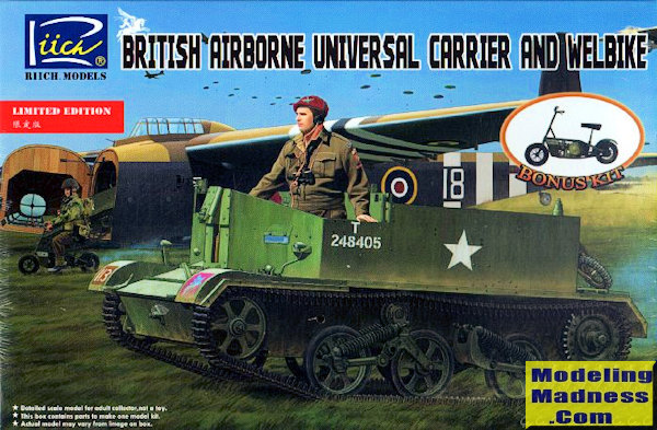 Riich tends to release some rather interesting kit subjects. This one is a reissue of a previous kit and has the benefit of including the neat little Welbike. By my count, this is the third Universal Carrier kit Riich has released.