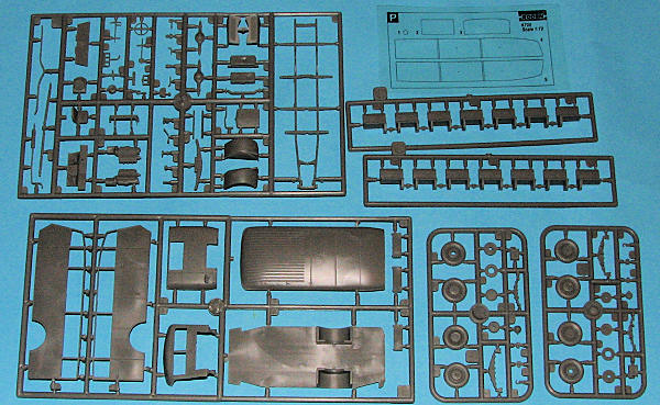 There are six nicely molded sprues of which the one for suspension bits is duplicated. There is no clear sprue, but thanks to the flat windows, a piece of properly marked acetate will work just fine. There is also a rather good sized etched fret for the larger roof rack and window shutters for the most part. I found a few