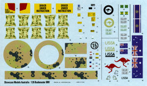 Instructions are well done providing painting information during the build as needed. Several paint options are provided in the color reference. All of them are painted the same as shown on the box art. The four options are for AMTG2 in Iraq during 2005/6, RAAF Airfield security at Avalon in 2007, Motorized Combat Wing School of Artillery in Puckpunyai in 2005, and 6RAR during Operation Acolyte in 2006. The nicely sized decal sheet looks to be well printed and should give good service.